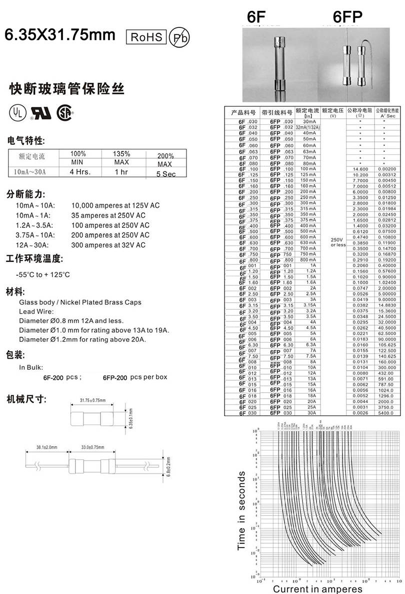6.35X31.75mm快斷玻璃保險絲