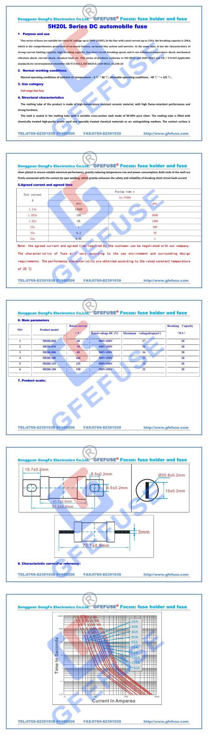 5H20L快速直流熔斷器(25A-150A)500V450V