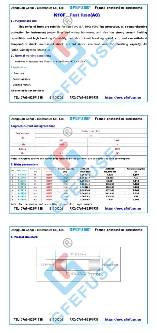 K10F 快速熔斷器(3A-30A)(600V(ac))